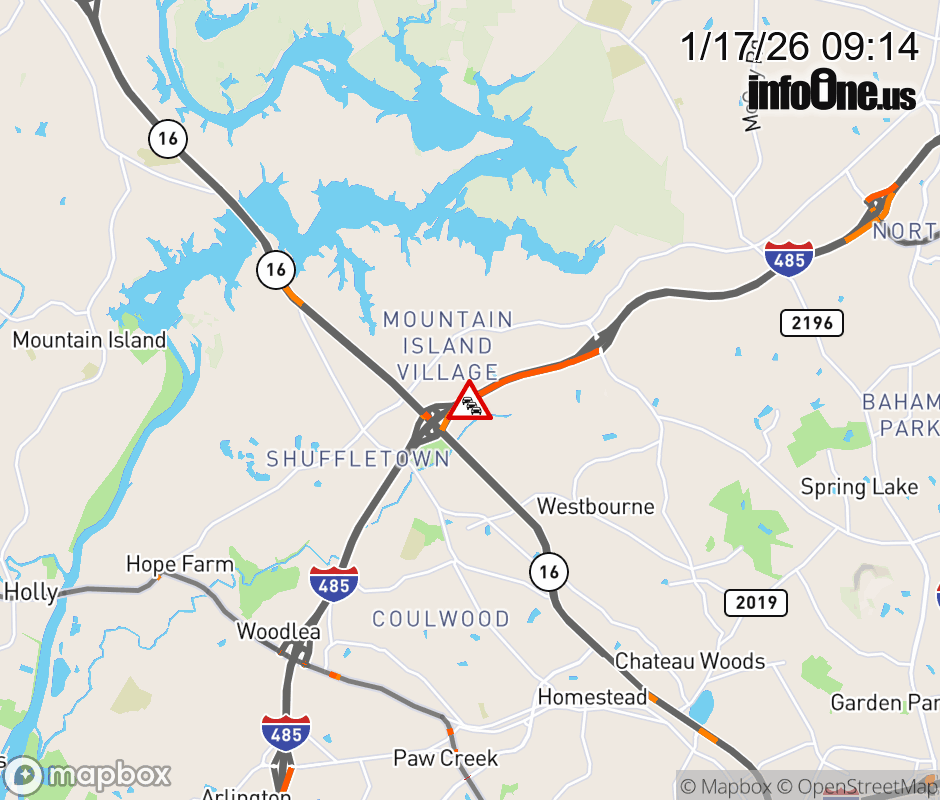 The 2 right lanes are closed near Exit 16 (Brookshire Blvd). ![]() |