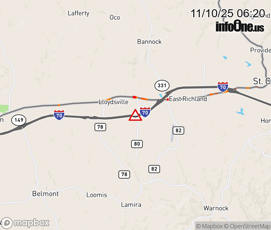 Expect lane closures on I-70 West beyond SR-331, due to a crash. Updated: Mon 11/10/25 6:20 AM EST ![]() Updated: Mon 11/10/25 6:20 AM EST |