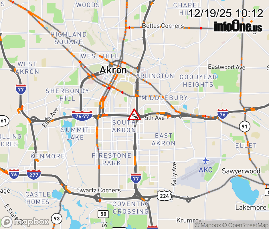 Ramp SR-8 South to I-76 West/I-77 North CLOSED because of an other incident. Updated: Fri 12/19/25 10:12 AM EST ![]() Updated: Fri 12/19/25 10:12 AM EST |