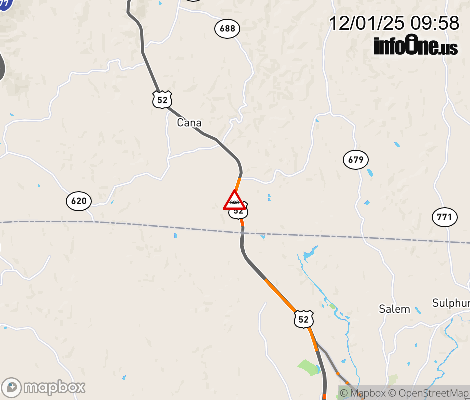 On US-52 North in the County of Carroll, in the vicinity of Lanecrest Dr; Rt. 981N/S (Carroll County), motorists can expect delays due to a vehicle crash. Lane closures exist. ![]() |