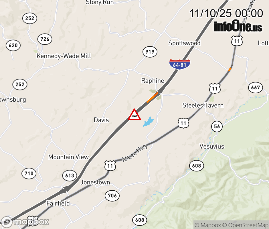 On I-81 at mile marker 204 in the County of Rockbridge, motorists can expect delays due to a vehicle crash. The north left shoulder and left lane are closed. ![]() |
