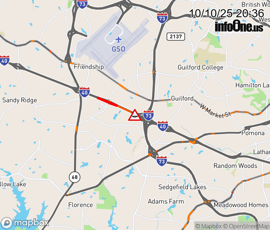 The left lane is Closed at Exit 212A(I-40 E). Updated: Fri 10/10/25 8:36 PM EDT ![]() Updated: Fri 10/10/25 8:36 PM EDT |