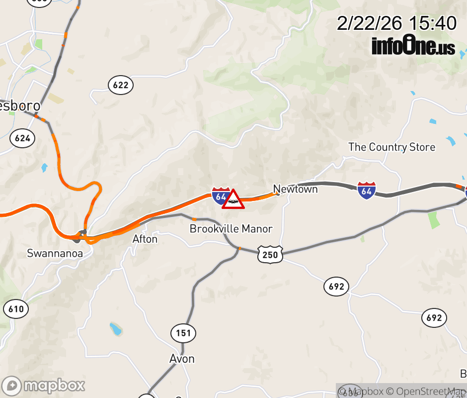 On I-64 at mile marker 102.7 in the County of Albemarle, motorists can expect delays due to a vehicle crash. The west right shoulder is closed. ![]() |