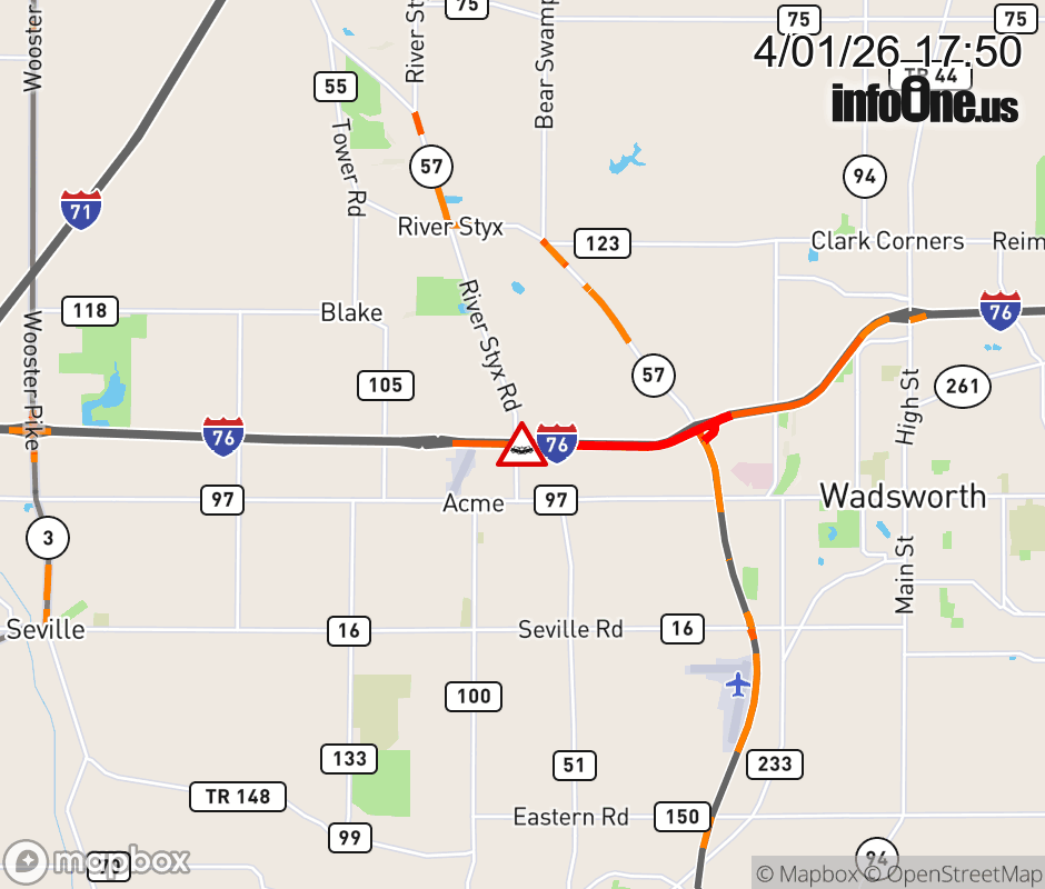 Canceled 4/1/26 6:34 PM Location: I-76/US-224 East at MM 6.4, OH Accident.