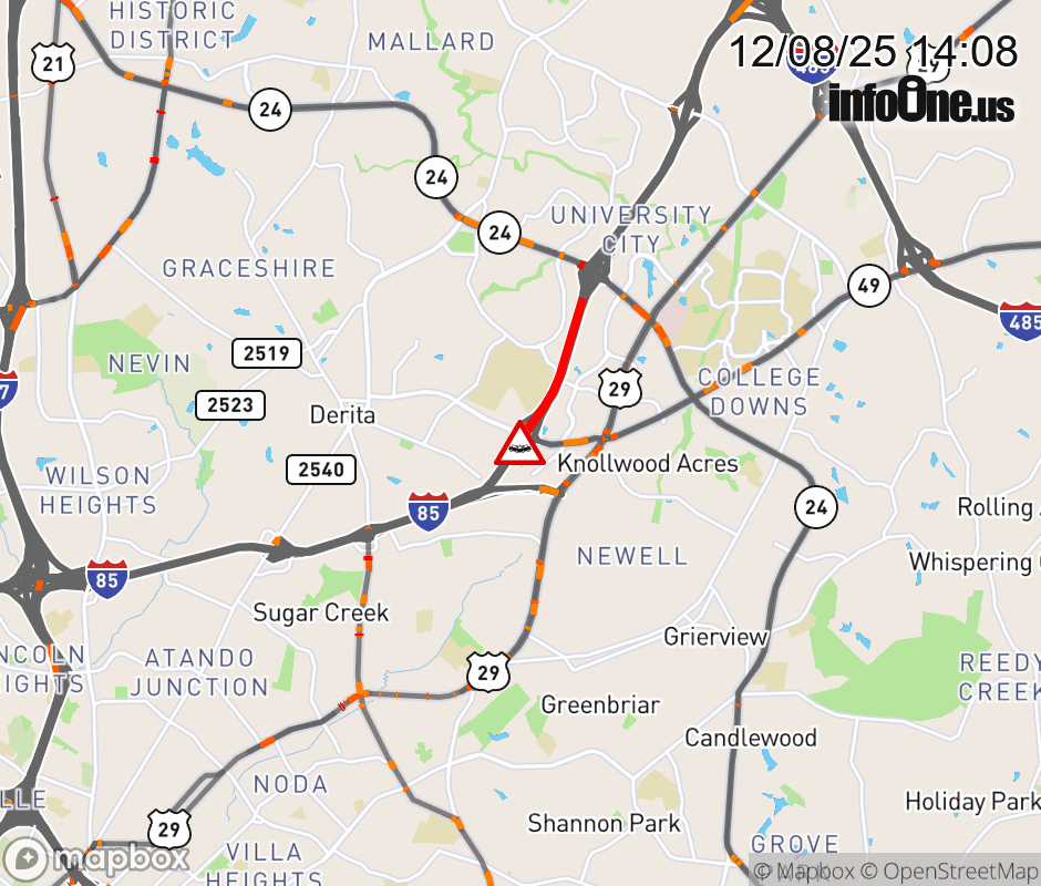 The right shoulder is closed at Exit 43 (University City Blvd). Updated: Mon 12/8/25 2:08 PM EST ![]() Updated: Mon 12/8/25 2:08 PM EST |
