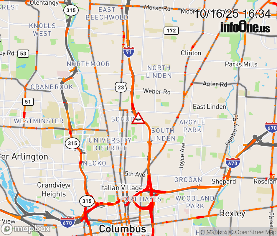 The center lane is blocked on I-71 South beyond Hudson St, due to a crash. ![]() |