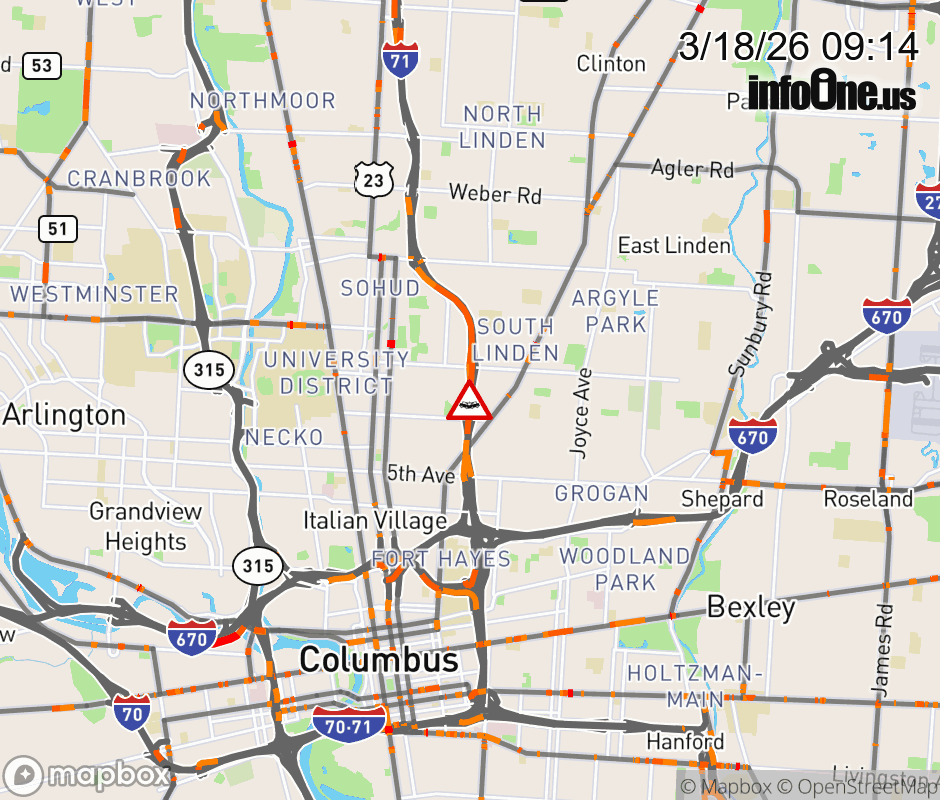 Ramp to 11Th Ave from I-71 South is blocked due to crash. ![]() |