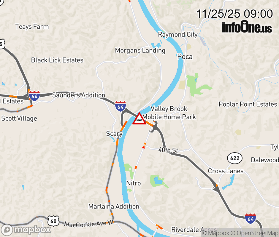 Canceled 11/25/25 12:00 PM Location: I-64 at MM 44.0, WV Accident.