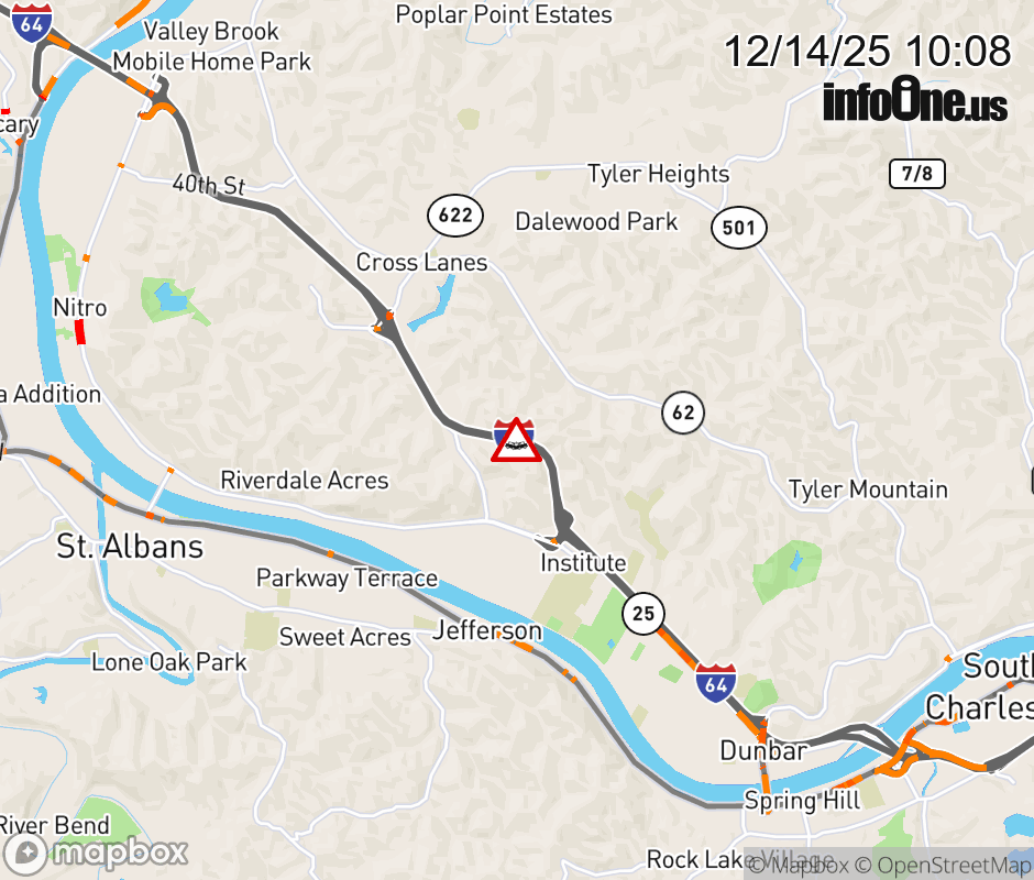 Canceled 12/14/25 12:10 PM Location: I-64 at MM 49.0, WV Accident.