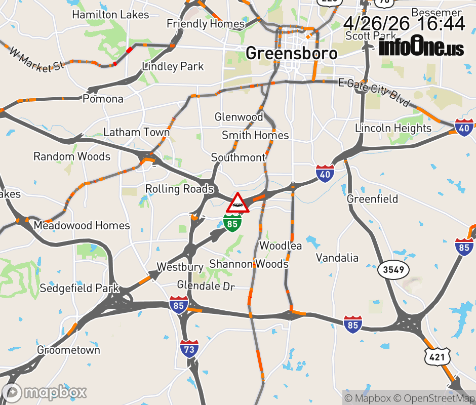 The right shoulder is closed at Exit 220 ( Randleman Rd).