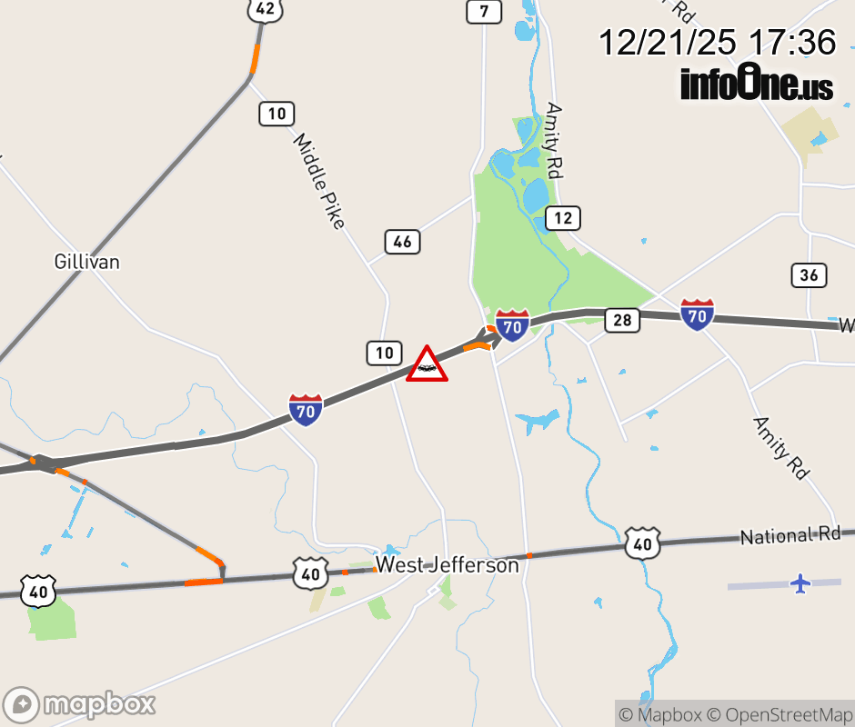 The left shoulder is blocked on I-70 East beyond SR-29/West Jefferson, due to a crash. ![]() |