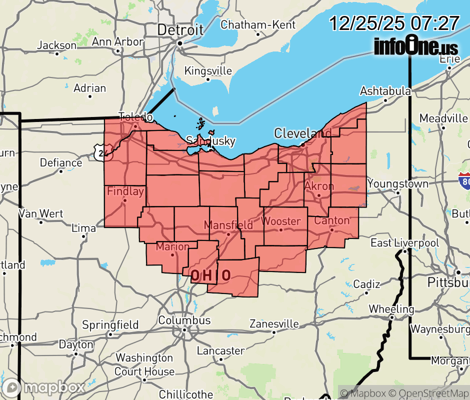 Canceled 12/25/25 10:00 AM Special Weather Statement issued December 25 at 7:25AM EST by NWS Cleveland OH Patchy dense fog has developed this morning and has reduced visibility to one mile or less at times. Motorists are urged to slow down, increase following distance, and be prepared for changes in visibility along their route. ![]() |