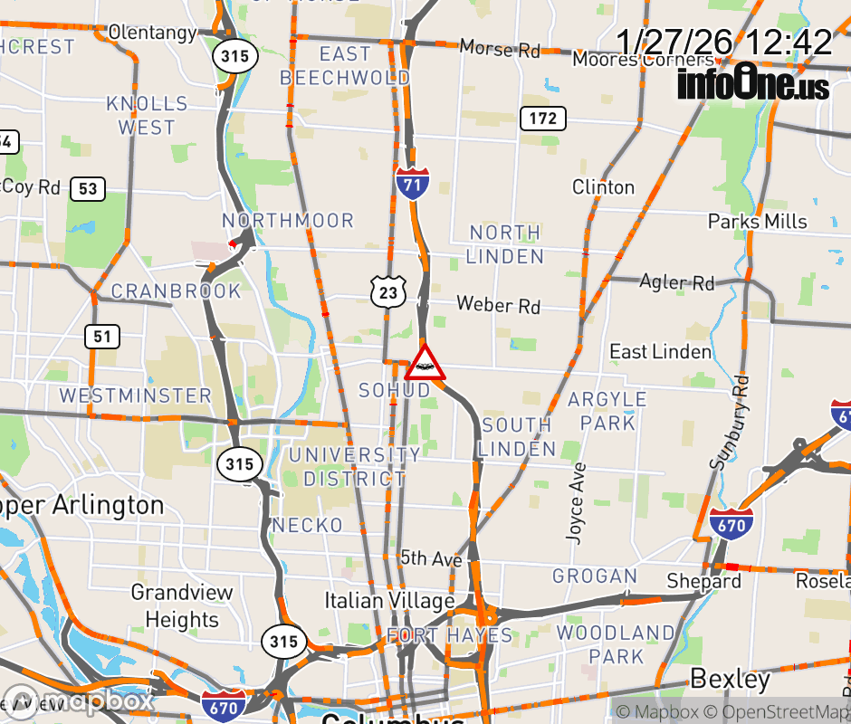 The right lane is blocked on I-71 South at Hudson St, due to a crash. ![]() |