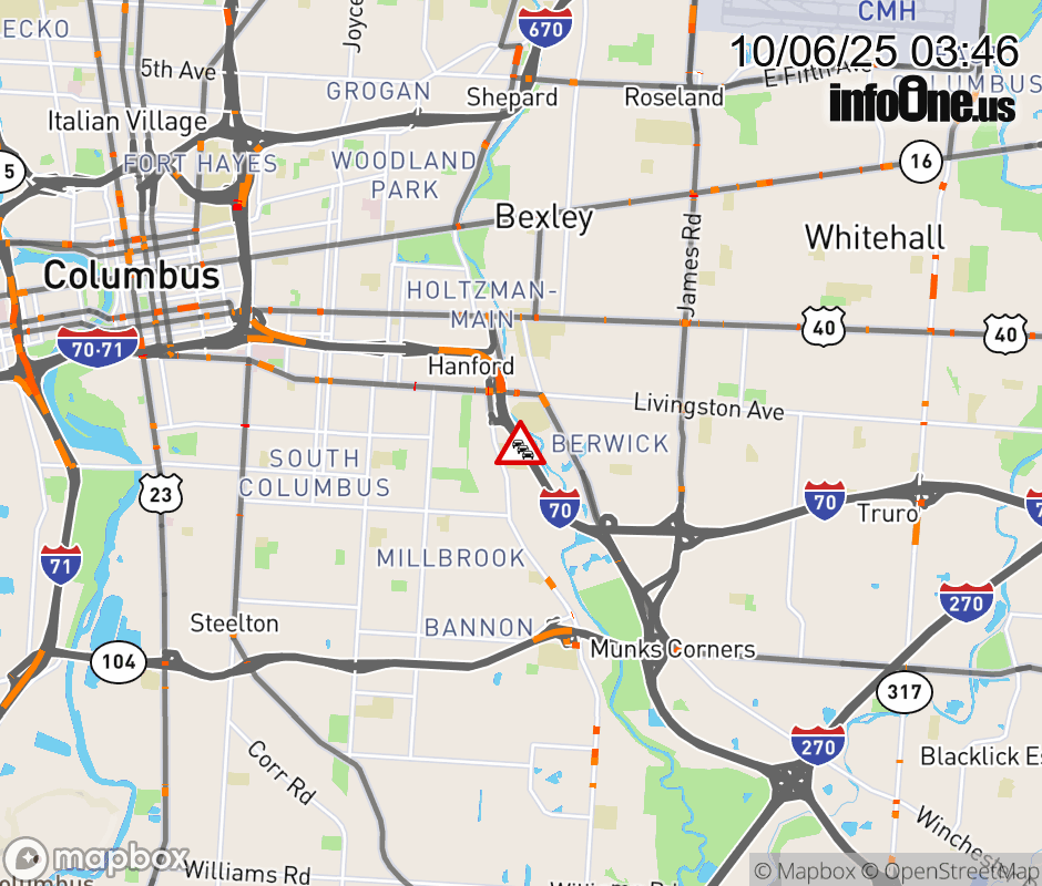 The 2 right lanes are blocked on I-70 West beyond US-33, due to repairs/maintenance. Updated: Mon 10/6/25 3:46 AM EDT ![]() Updated: Mon 10/6/25 3:46 AM EDT |