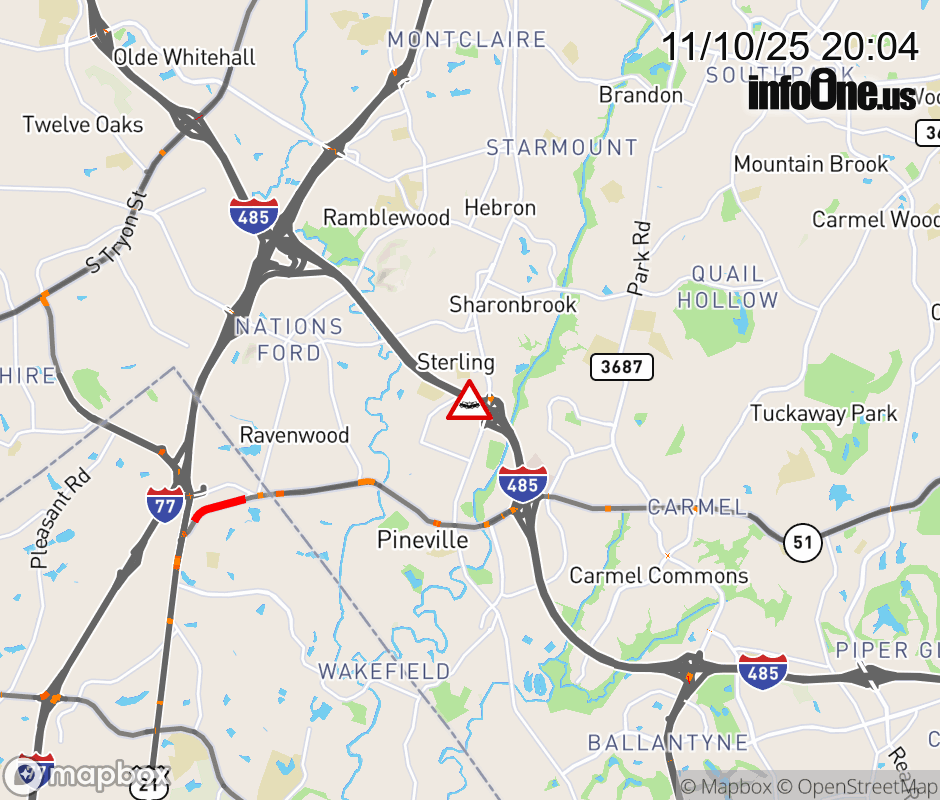 The right shoulder is closed at Exit 65B (South Blvd.). Updated: Mon 11/10/25 8:04 PM EST ![]() Updated: Mon 11/10/25 8:04 PM EST |