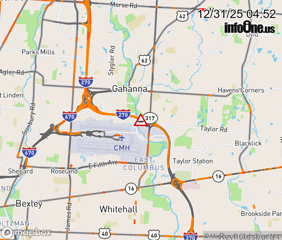 The left lane is blocked on I-270 South at SR-317/Hamilton Rd, due to a crash. ![]() |
