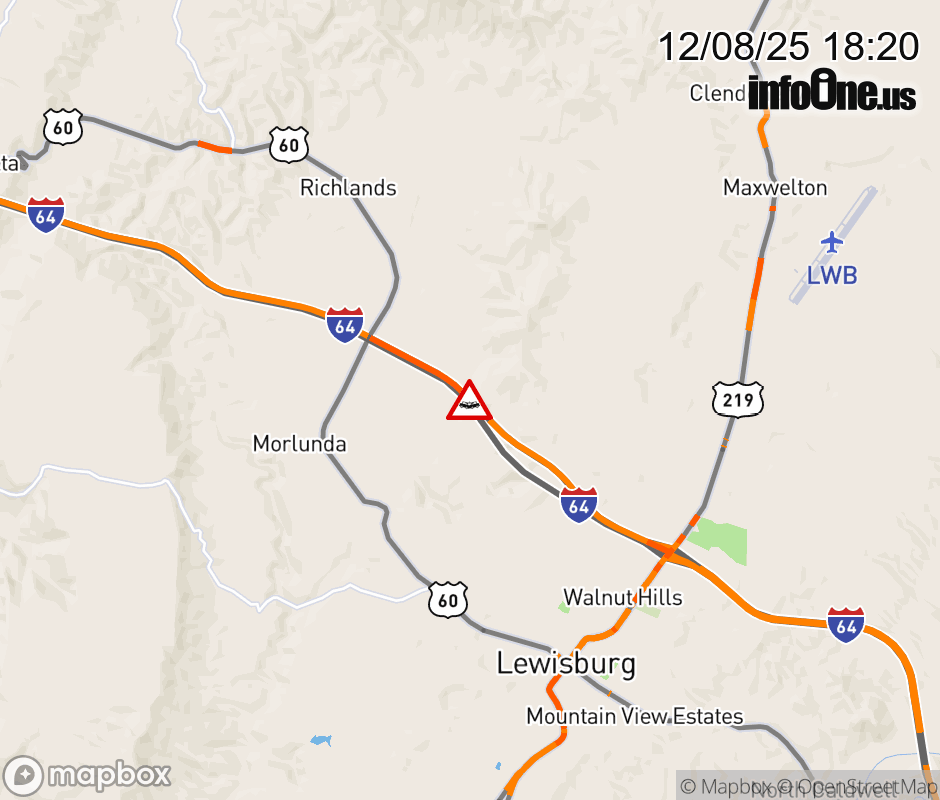 Canceled 12/8/25 8:08 PM Location: I-64 at MM 167.0, WV Accident.