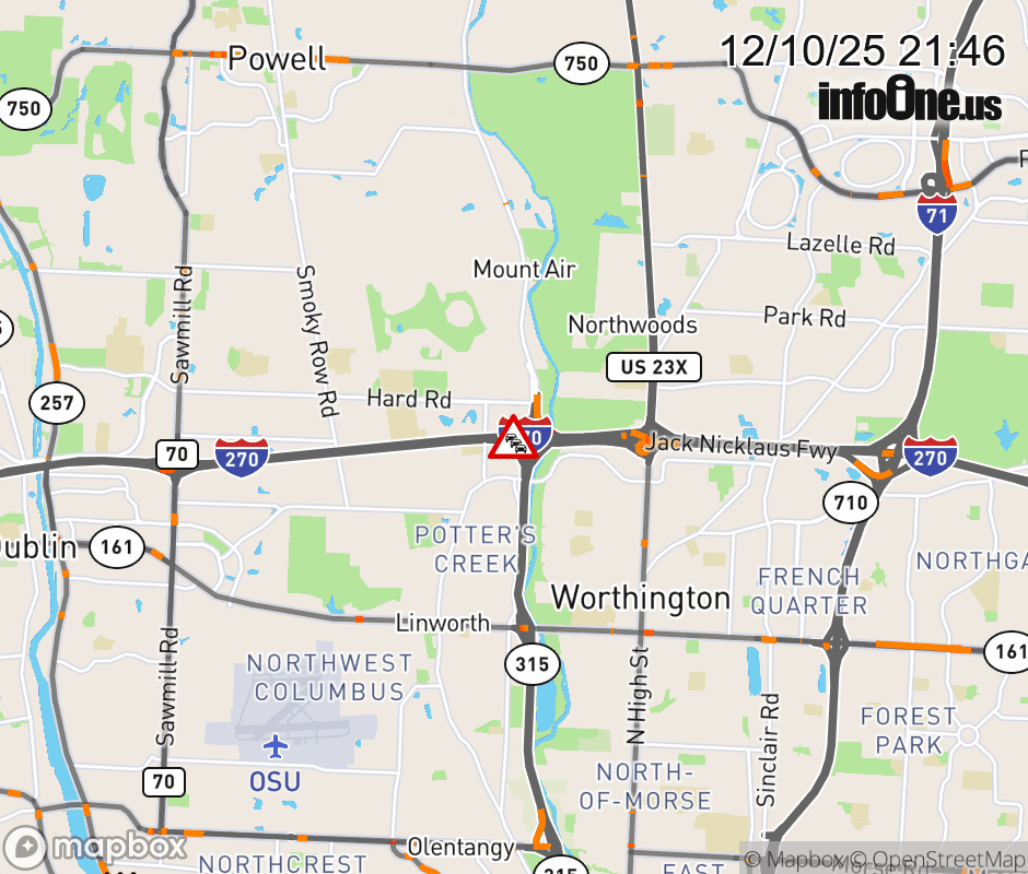 The left lane is closed on Ramp I-270 West to SR-315 South beyond I-270, due to snow/ice. Updated: Wed 12/10/25 9:46 PM EST ![]() Updated: Wed 12/10/25 9:46 PM EST |
