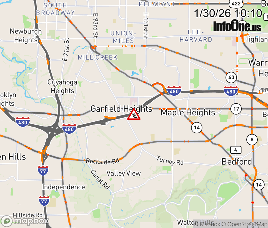 Ramp to SR-17/Granger Rd from I-480 East is blocked due to debris on roadway. ![]() |