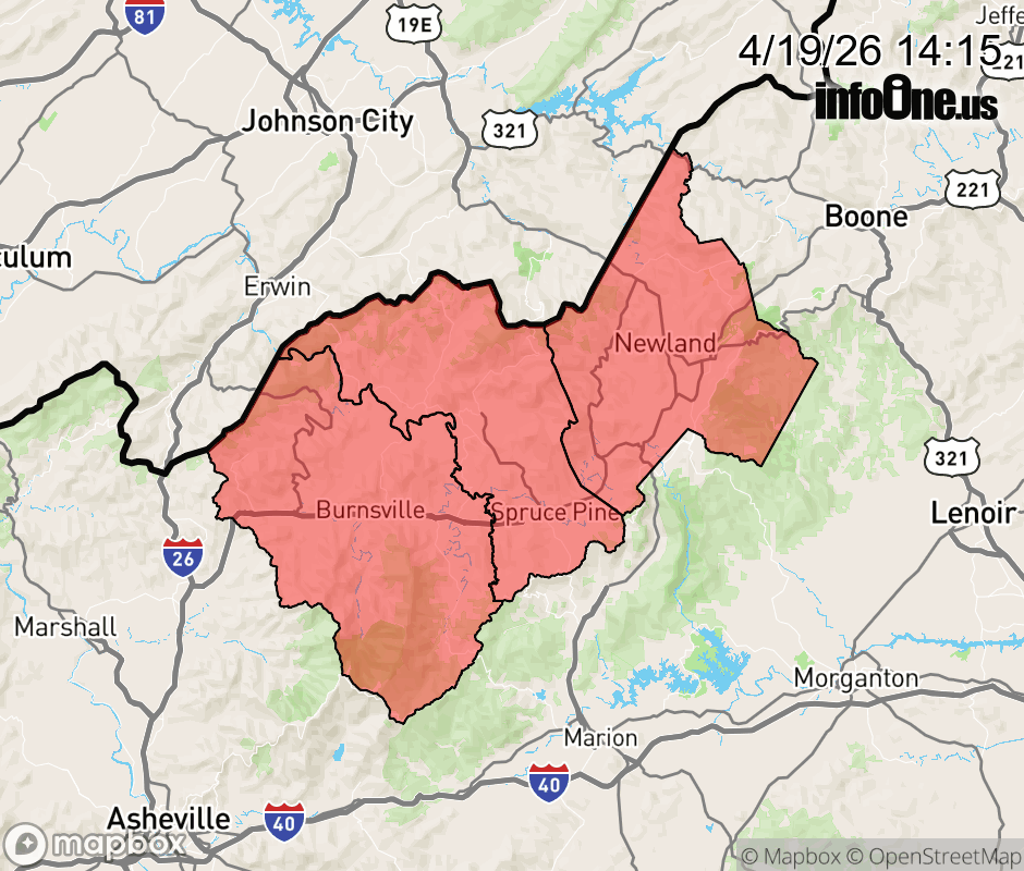 Canceled 4/19/26 6:58 PM Freeze Watch issued April 19 at 2:14PM EDT until April 21 at 9:00AM EDT by NWS Greenville-Spartanburg SC * WHAT... Sub-freezing temperatures as low as 28 are possible. * WHERE... Avery, Mitchell, and Yancey Counties. * WHEN... From late Monday night through Tuesday morning. * IMPACTS... Frost and freeze conditions could kill crops, other sensitive vegetation and possibly damage unprotected outdoor plumbing. ![]() |