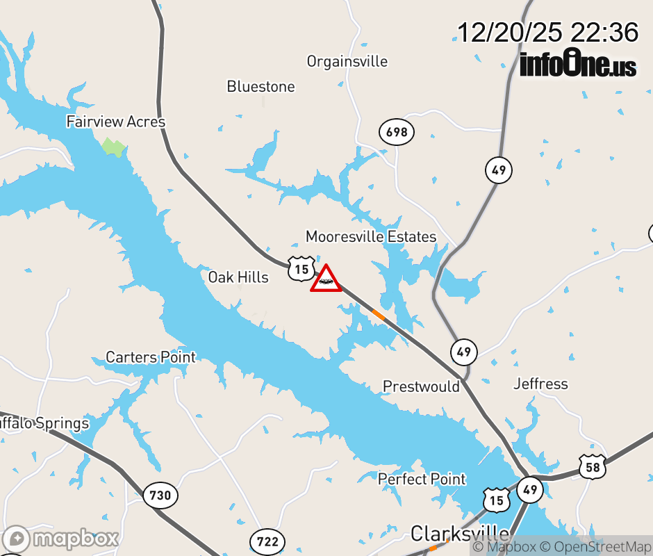 On US-15 North in the County of Mecklenburg, in the vicinity of Mooresville Rd; Rt. 857E/W (Mecklenburg County), motorists can expect delays due to a vehicle crash. Updated: Sat 12/20/25 10:36 PM EST ![]() Updated: Sat 12/20/25 10:36 PM EST |