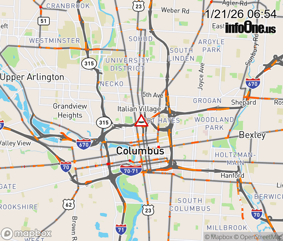 The left lane is blocked on I-670 East at US-23/Third St/Fourth St, due to a crash. ![]() |