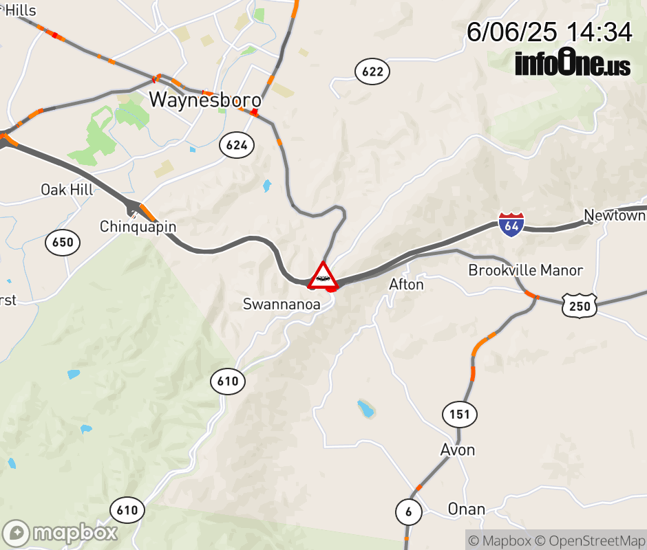 On US-250 in the County of Augusta, in the vicinity of the ramp from I-64E and West, motorists can expect delays due to a vehicle crash. The east left shoulder and left lane are closed. The east entrance ramp narrows. The west left shoulder and left lane are closed. ![]() |