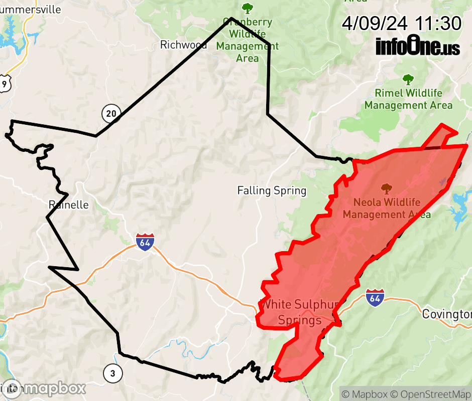 Canceled 4/9/24 11:51 AM Greenbrier County has 1 power outage affecting 57 customers. Potomac Edison 57 without power White Sulphur Springs: Customers affected: 57 (1%) Estimated repair: Tue 1:30 PM Updated: Tue 4/9/24 11:30 AM EDT ![]() |