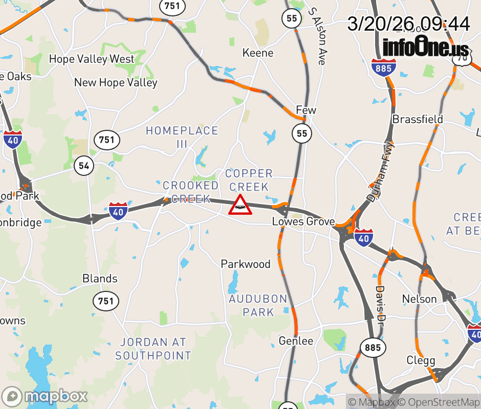 The right shoulder is closed 1 mile before Exit 278 (NC-55). Updated: Fri 3/20/26 9:44 AM EDT ![]() Updated: Fri 3/20/26 9:44 AM EDT |
