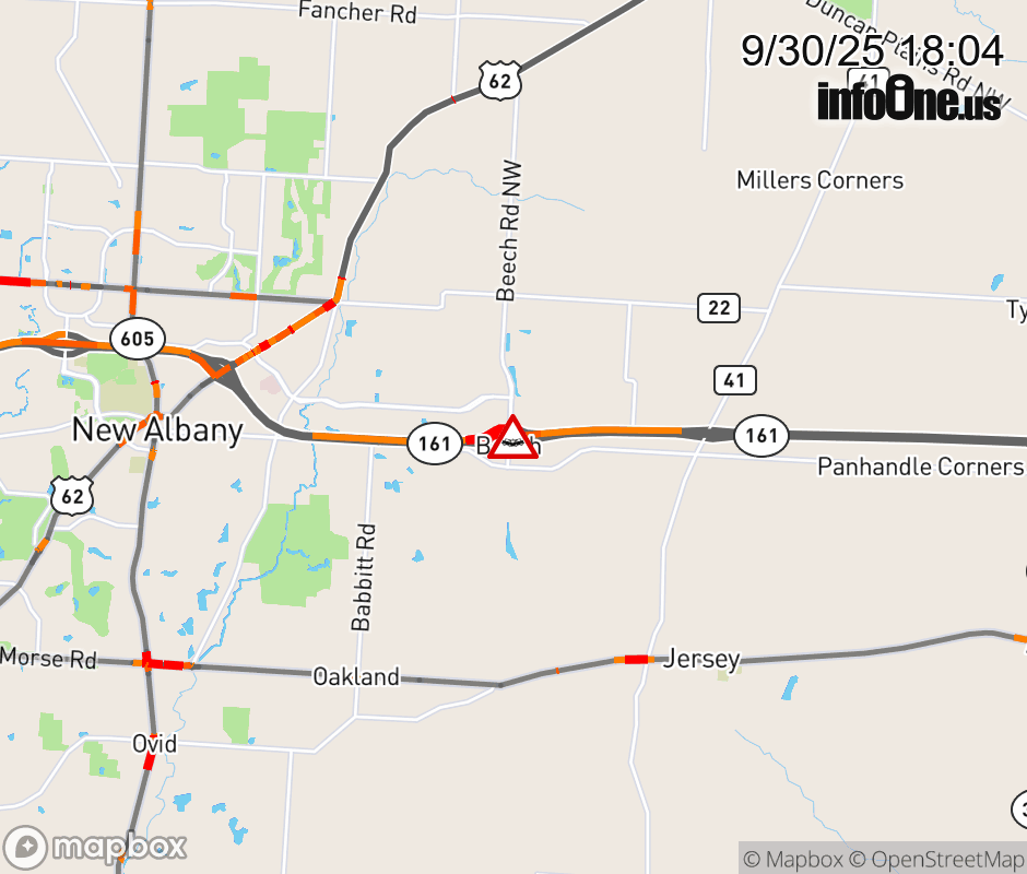 The left lane is blocked on SR-161 West at Beech Rd, due to a crash. ![]() |