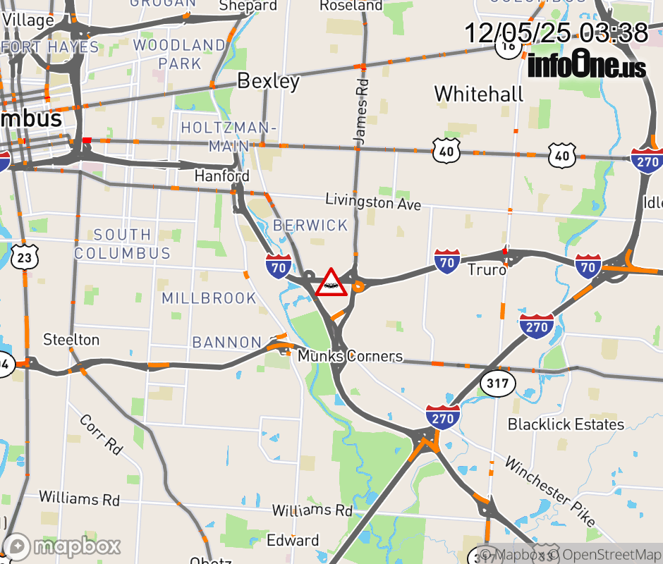 Expect lane closures on I-70 in both directions 0.3 miles beyond US-33. (MM: 105.1), due to crash. ![]() |