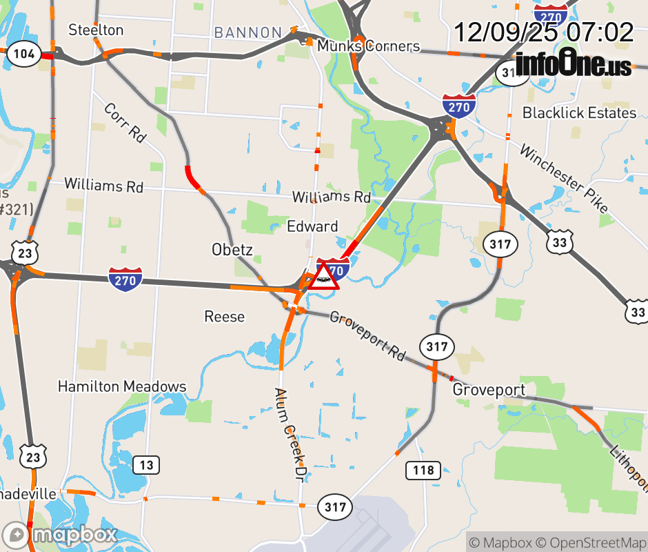 The right shoulder is blocked on I-270 South at Alum Creek Dr, due to a crash. ![]() |
