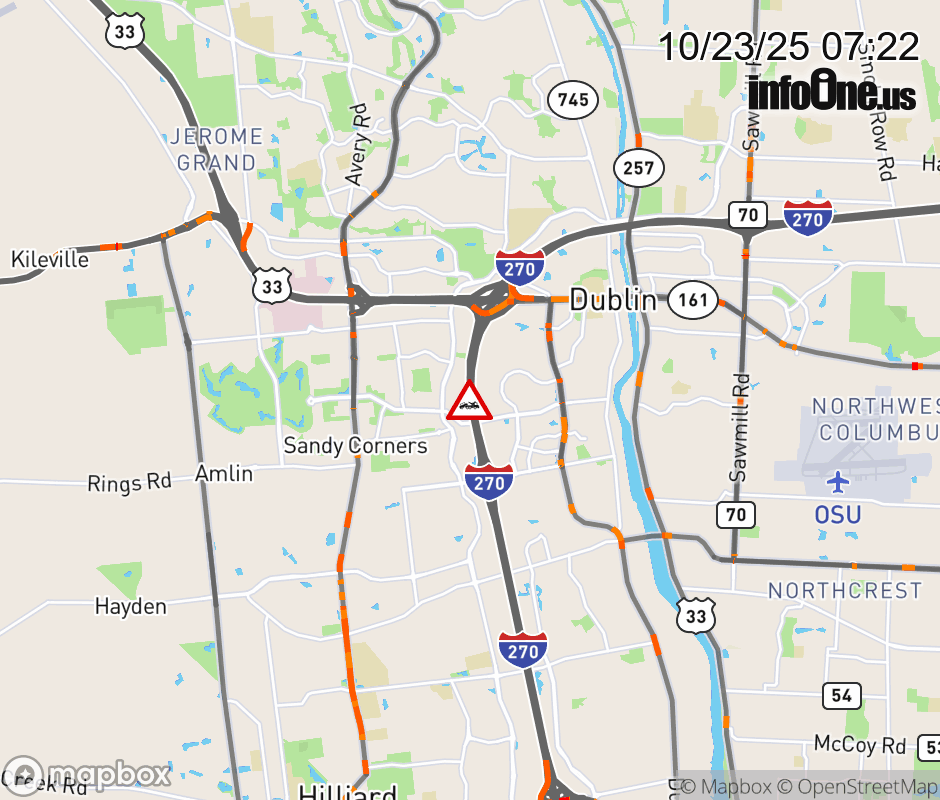 The left shoulder is blocked on I-270 South beyond US-33/SR-161, due to a disabled vehicle. ![]() |