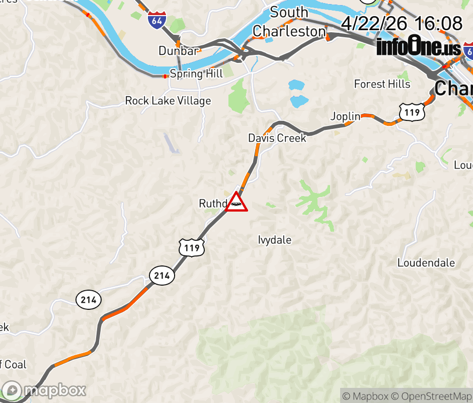 Vehicle Crash on CR-119/81 (Southridge Blvd) & US-119 (Corridor G North) in South Charleston. ![]() |