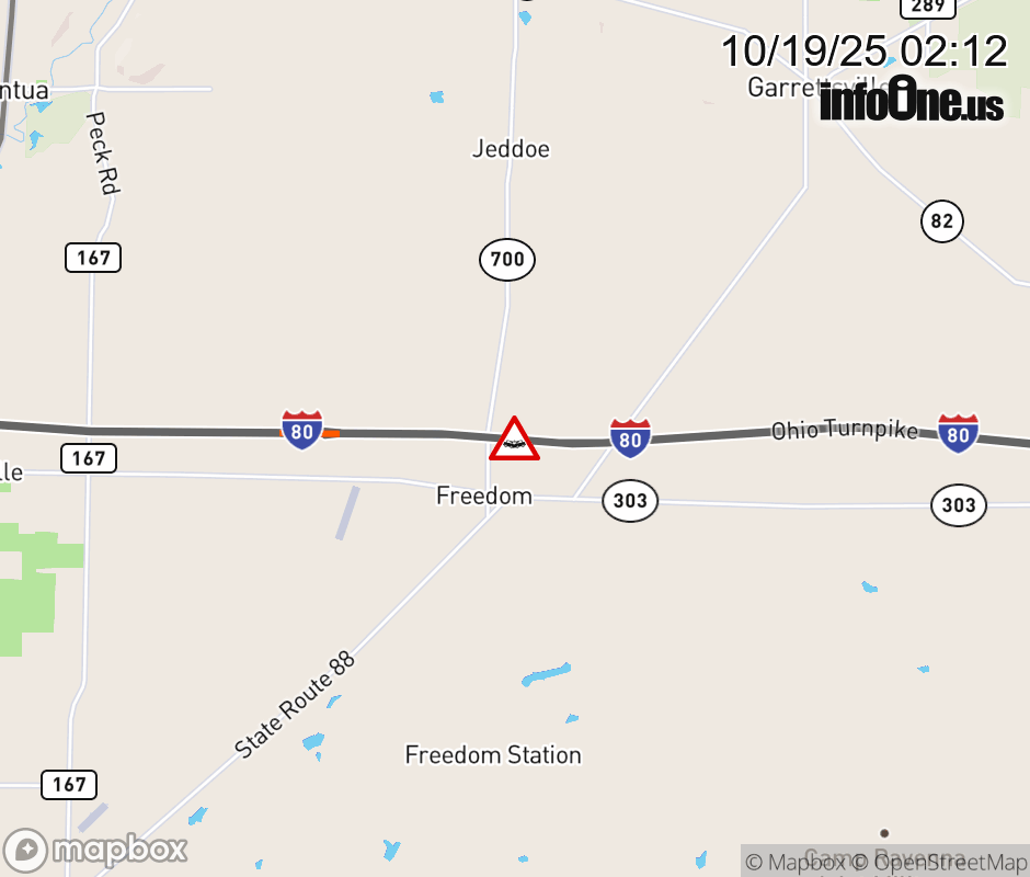Canceled 10/19/25 3:40 AM Location: I-80 West (Ohio Turnpike) W, OH Accident.