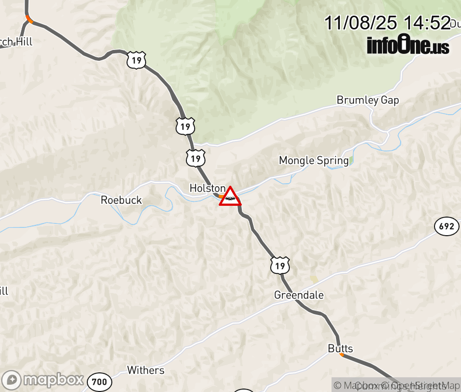 On US-19 in the County of Washington, in the vicinity of Porterfield Hwy; Rt. 611N/S (Washington County), motorists can expect delays due to a vehicle crash. The south left shoulder and left lane are closed. ![]() |