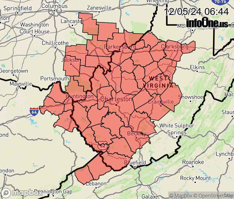 Canceled 12/5/24 7:00 AM Wind Advisory issued December 5 at 6:42AM EST until December 5 at 7:00AM EST by NWS Charleston WV The threat for elevated wind gusts in excess of 40 miles per hour or greater have ended in the wake of the cold front. Breezy winds prosper through the rest of today, but will remain below wind advisory thresholds. ![]() |