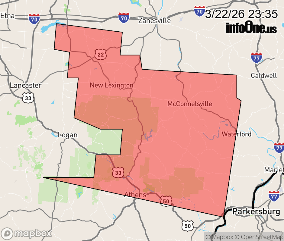 Canceled 3/23/26 12:15 AM Special Weather Statement issued March 22 at 11:33PM EDT by NWS Charleston WV At 1133 PM EDT, Doppler radar was tracking strong thunderstorms along a line extending from near Thornport to Hide-A-Way Hills to near Hocking Hills State Park. Movement was east at 60 mph. HAZARD...Wind gusts up to 50 mph and pea size hail. SOURCE...Radar indicated. IMPACT...Gusty winds could knock down tree limbs and blow around unsecured objects. Minor hail damage to vegetation is possible. Locations impacted include... Athens, Nelsonville, New Lexington, Glouster, McConnelsville, Somerset, Beverly, Shawnee, Chesterhill, Perry State Forest, Thornport, Harbor Hills, Crooksville, Chauncey, Thornville, Junction City, New Straitsville, Malta, Corning, and Buchtel. ![]() |