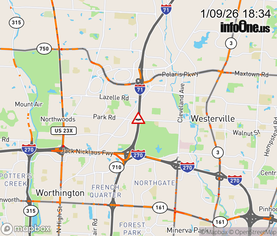 The 2 right lanes are blocked on I-71 South beyond Gemini Place To Polaris Pkwy, due to a crash. ![]() |