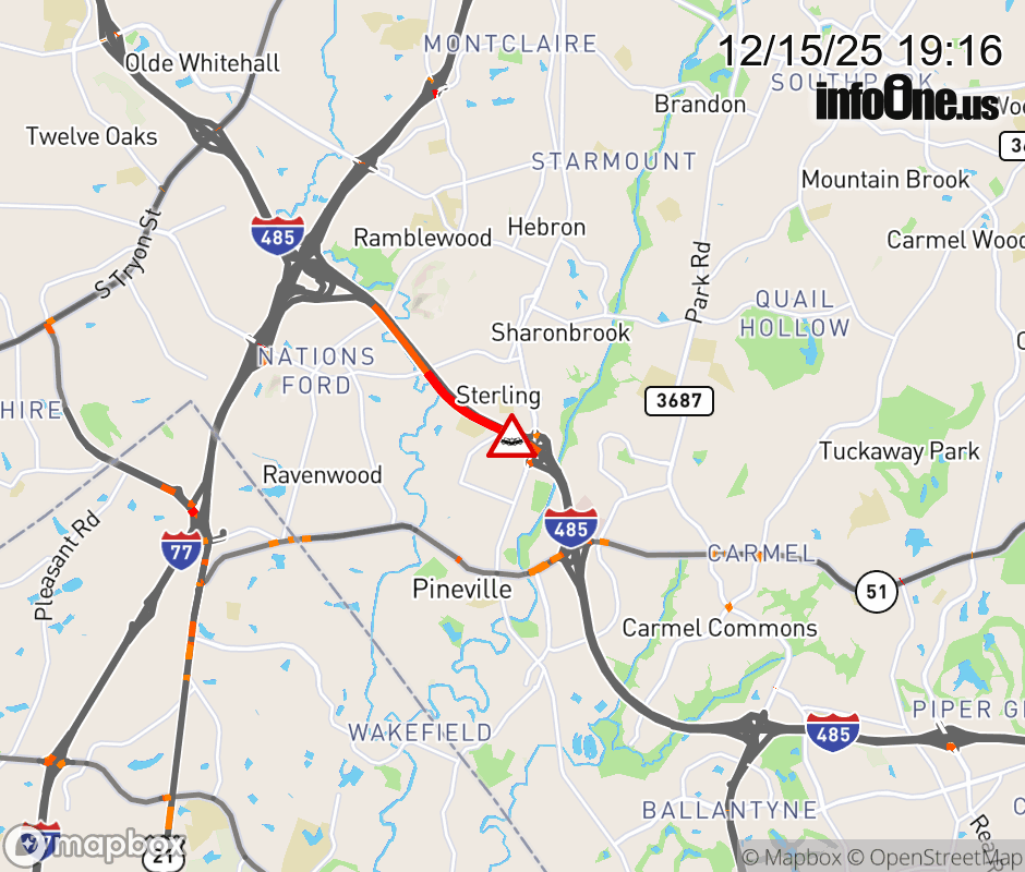 The two right lane are closed at Exit 65 (South Blvd). Updated: Mon 12/15/25 7:16 PM EST ![]() Updated: Mon 12/15/25 7:16 PM EST |