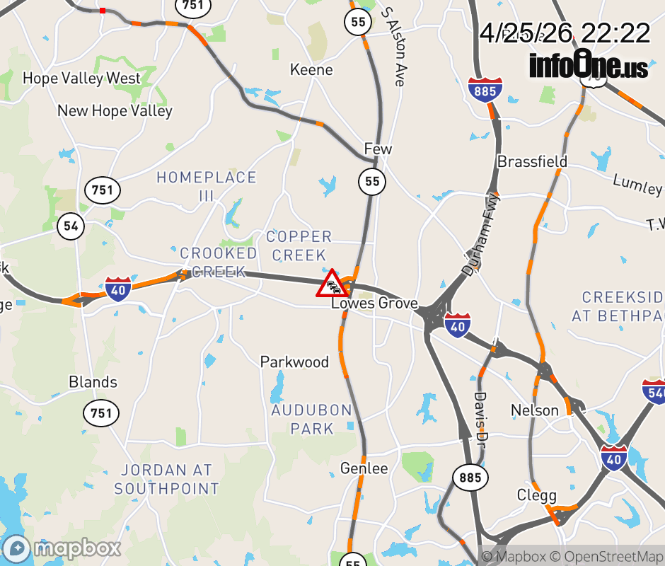 The right lane is closed near Exit 274 (NC 751). ![]() |