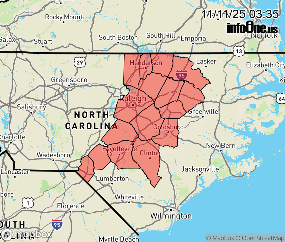 Canceled 11/11/25 6:00 PM Special Weather Statement issued November 11 at 3:34AM EST by NWS Raleigh NC The combination of low relative humidity values of 22 to 30 percent, ongoing drought conditions, dry fine fuels, and frequent wind gusts up to 20 to 30 mph will produce an increased fire danger across eastern portions of central North Carolina today. Outdoor burning is discouraged. Please consult your local burn permitting authorities as to whether burning is allowed today. If you must burn, use extreme caution, as fires can spread rapidly under these conditions. ![]() |