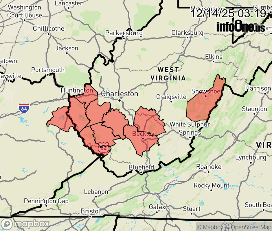 Canceled 12/14/25 9:02 AM Winter Weather Advisory issued December 14 at 3:17AM EST until December 14 at 1:00PM EST by NWS Charleston WV * WHAT... Snow. Additional snow accumulations up to two inches. Winds gusting as high as 35 mph. * WHERE... Portions of northeast Kentucky and northeast, southeast, southern, and western West Virginia. * WHEN... Until 1 PM EST this afternoon. * IMPACTS... Plan on slippery road conditions. ![]() |