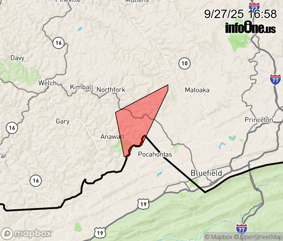 Canceled 9/27/25 5:00 PM Severe Thunderstorm Warning issued September 27 at 4:57PM EDT until September 27 at 5:00PM EDT by NWS Charleston WV The storm which prompted the warning has weakened below severe limits, and no longer poses an immediate threat to life or property. Therefore, the warning will be allowed to expire. However, small hail, gusty winds and heavy rain are still possible with this thunderstorm. To report severe weather, contact your nearest law enforcement agency. They will relay your report to the National Weather Service Charleston West Virginia. ![]() |