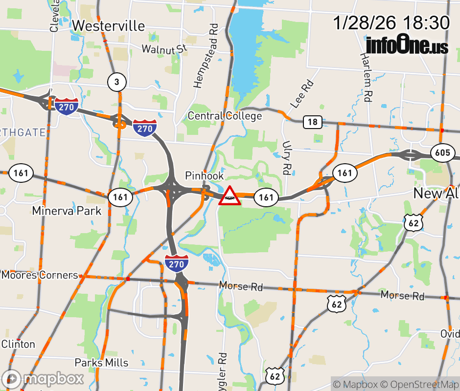 The left lane is blocked on Ramp SR-161 West to I-270, due to a crash. ![]() |