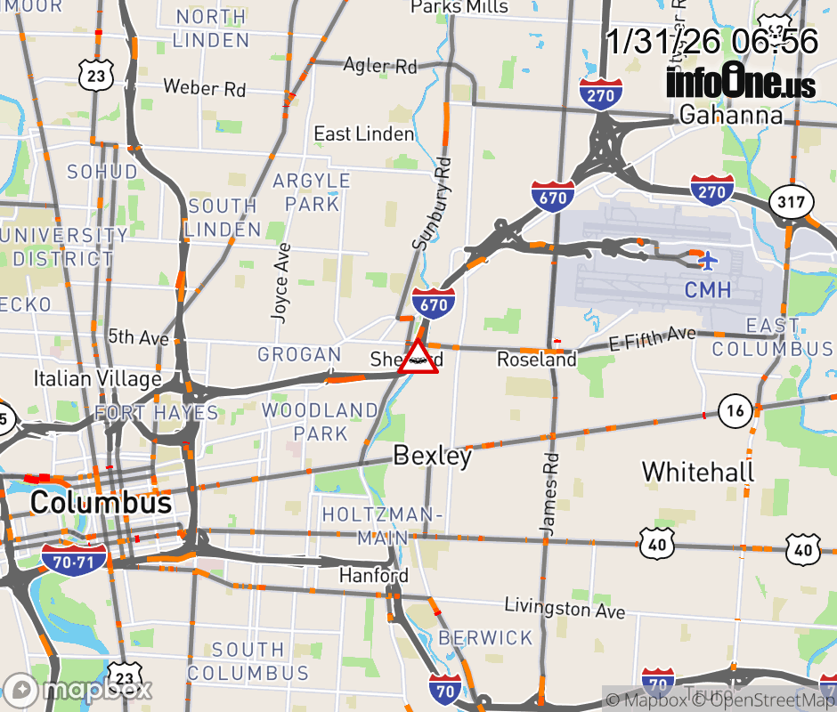 All lanes are closed on Ramp from I-670 E to E 5th Ave at E 5th Ave, due to a crash. ![]() |