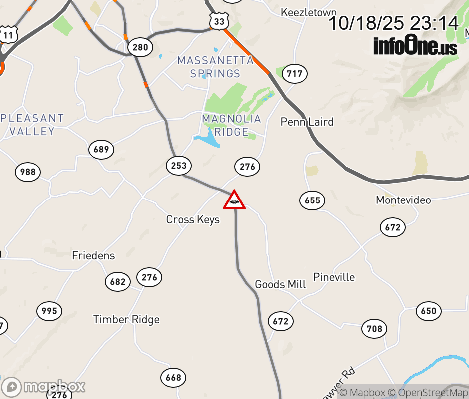 On VA-253 in the County of Rockingham, in the vicinity of Goods Mill Rd; Rt. 708E/W (Rockingham County), motorists can expect delays due to a vehicle crash. All east lanes are closed. ![]() |