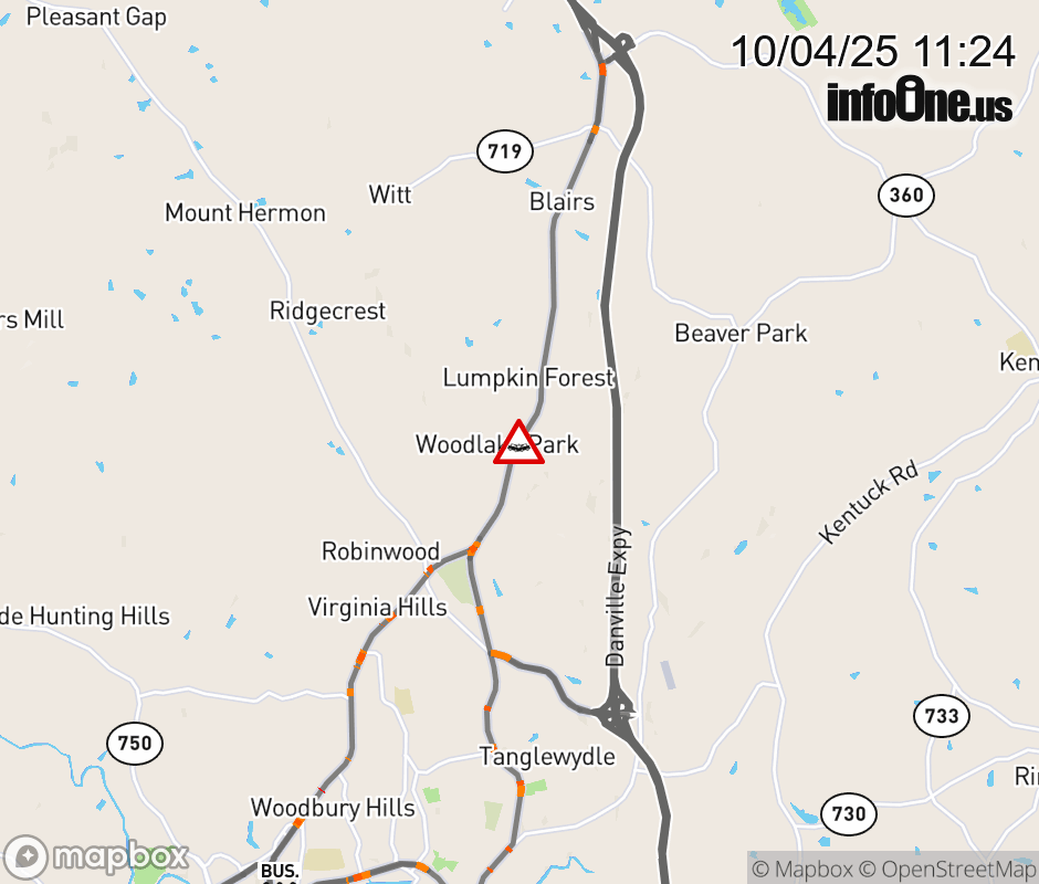 On BUS US-29 North in the County of Pittsylvania, in the vicinity of Woodlake Dr; Rt. 1502E/W (Pittsylvania County), motorists can expect delays due to a vehicle crash. Lane closures exist.