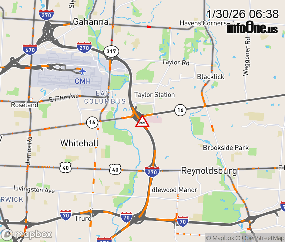 Expect lane closures on Ramp from I-270 N to OH-16, due to a disabled vehicle. ![]() |