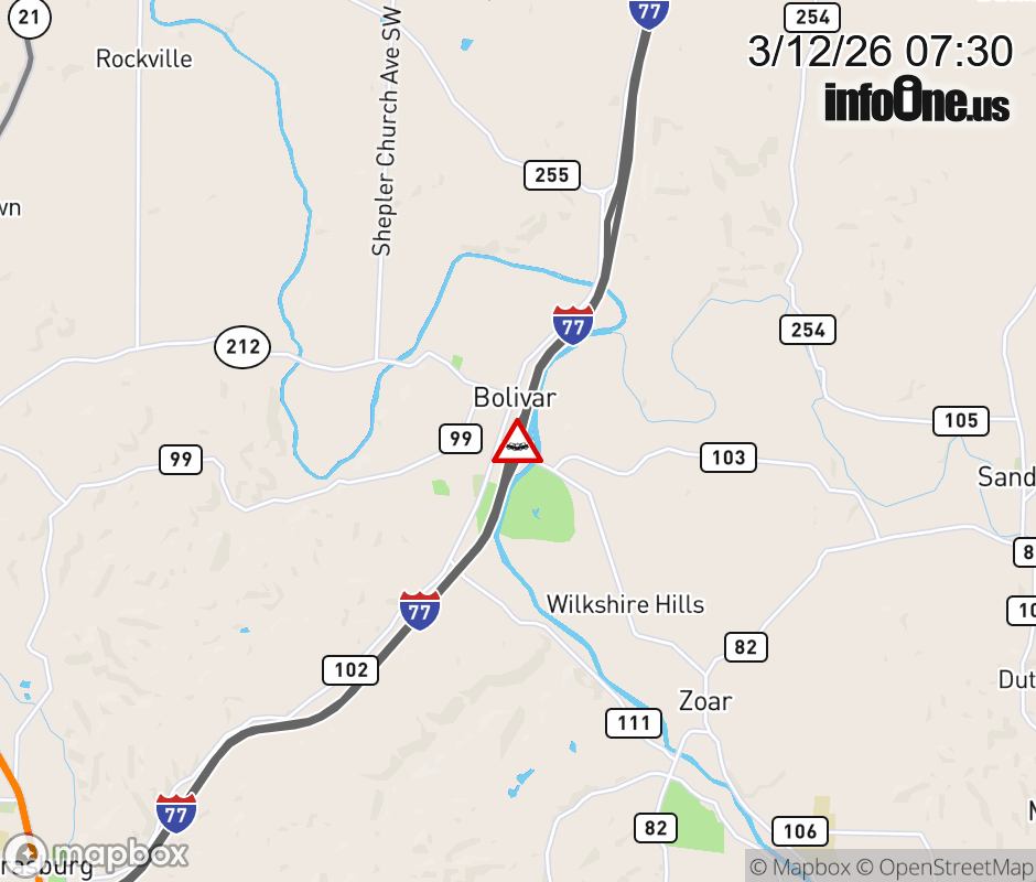 Expect lane closures on I-77 North beyond SR-212/Bolivar/Zoar, due to a crash. ![]() |